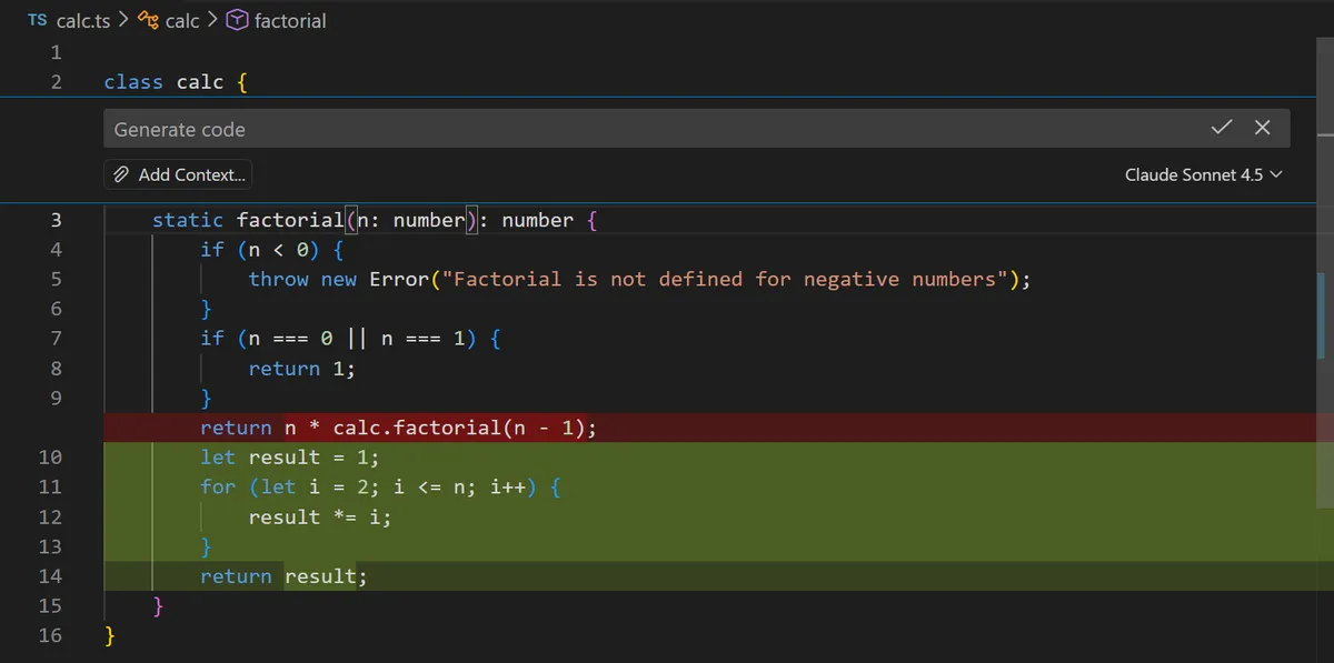 Inline Chat: For interactive suggestions, use Copilot’s inline chat (Ctrl+I) for conversational code generation.