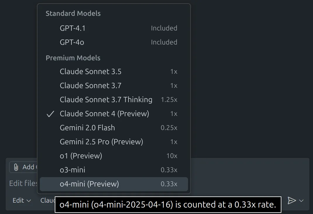 - Using o1 in Copilot Chat: With a 10× multiplier, one interaction counts as 10 premium requests.