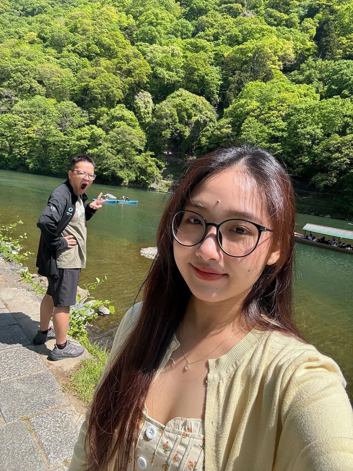 Ăn xong, tụi tôi đi bộ ra sông Kamo. Người ta ngồi thư giãn, mấy cặp thì picnic, còn tôi thì cố gắng không làm rớt điện thoại xuống nước. Rồi tụi tôi qua Gion, khu phố geisha cổ kính. Chẳng thấy geisha xịn nào cả, toàn khách du lịch mặc đồ cosplay thôi. Đi bộ nhiều vì cảnh đẹp quá. Rồi lại đói, dù mới ăn sushi xong, nên hai đứa tấp vào ăn cơm vịt cho bữa tối. Quán tên gì thì tôi chịu, nhưng tôi nhớ nụ cười của Khanhu vì ẻm lại được ăn. Đôi khi, những khoảnh khắc tuyệt vời nhất lại là những lúc không hề có trong kế hoạch.