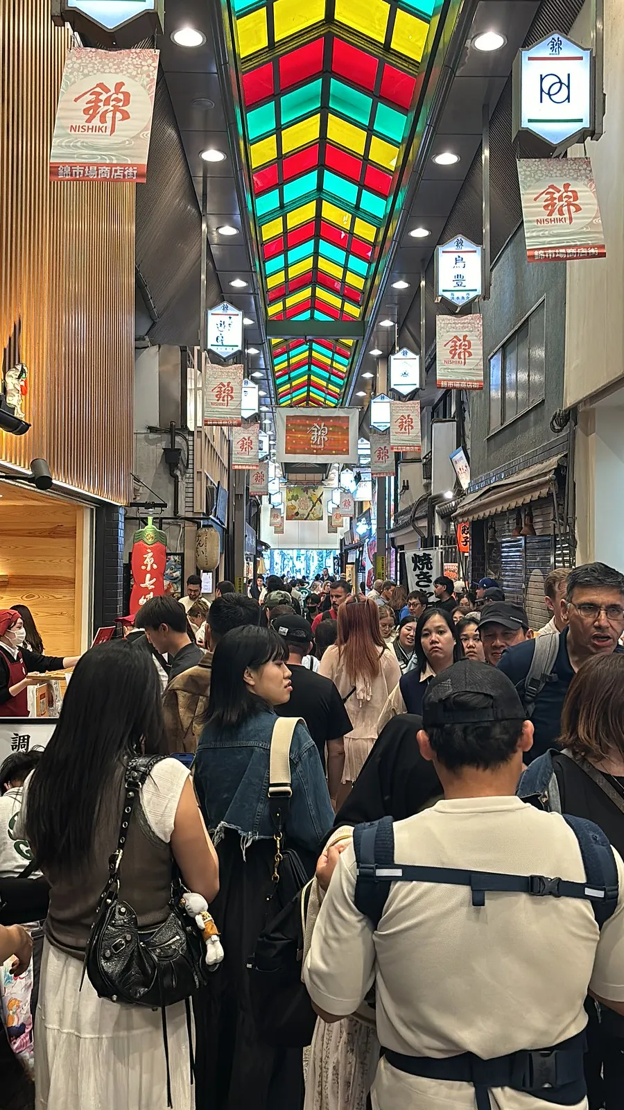 Điểm dừng chân đầu tiên: Chợ Nishiki. Nơi đây đúng là thiên đường cho mấy đứa mê ăn uống – kem matcha (món khoái khẩu của Khanhu, tụi tôi phải quay lại đây mấy lần chỉ để ăn nó), rồi sushi ở Sushi Sho. No căng cái bụng.