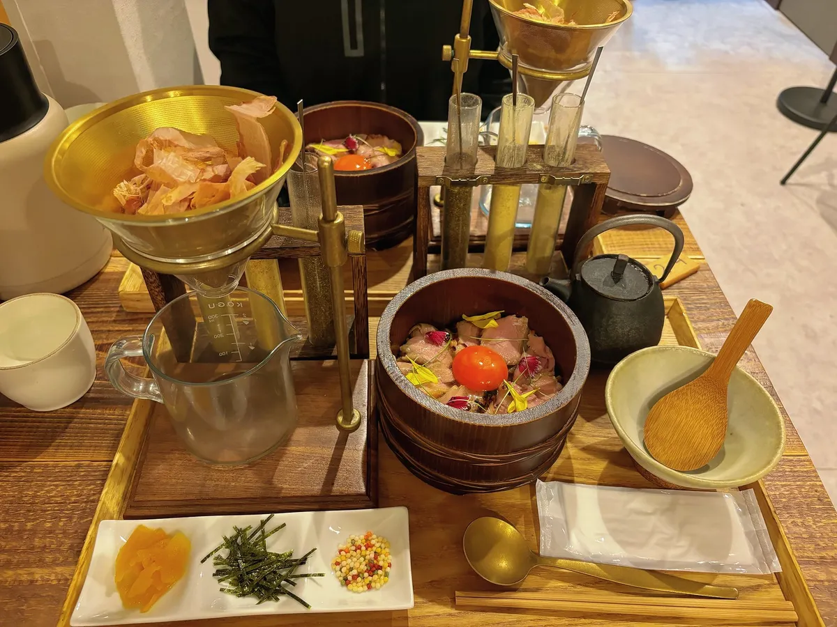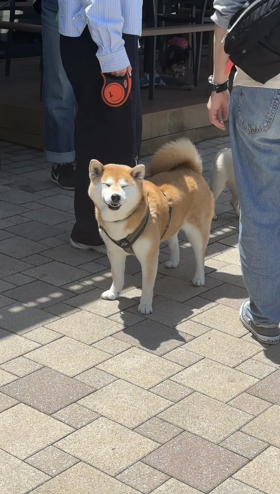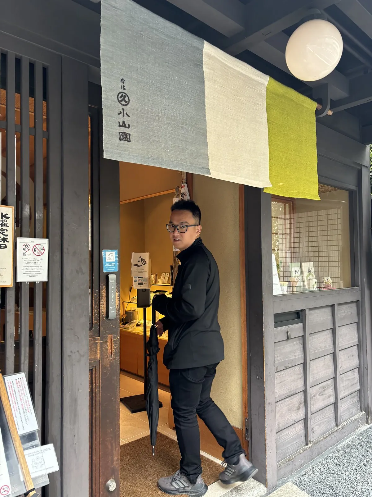 Buổi chiều, trang bị ô và lòng quyết tâm (chủ yếu của vợ tôi), tụi tôi dũng cảm đối mặt với thời tiết. Mục tiêu chính: thu mua matcha ở Marukyu Koyamaen. Nhiệm vụ hoàn thành. Sau đó tụi tôi đi lang thang tận hưởng không khí trong lành ở Nhật, tiện thể “bắt” vài con Pokémon đời thực – mấy em chó Nhật cưng xỉu.