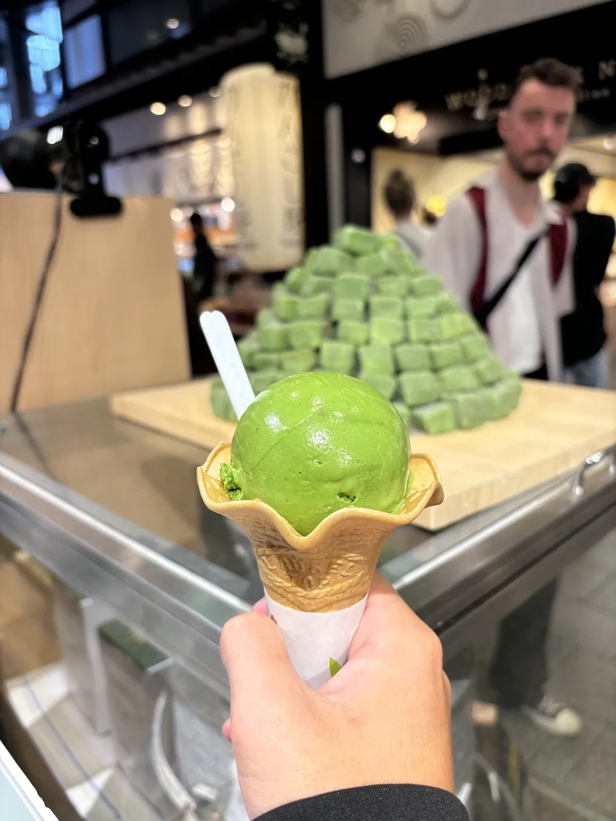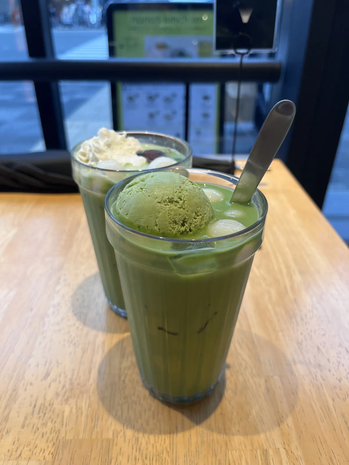 Trước khi đầu hàng trước vòng tay ấm áp của khách sạn, một điểm dừng chân bắt buộc tại Nana’s Green Tea để nạp thêm đồ tráng miệng tẩm matcha. Khanhu thì sướng rơn. Máu tôi chắc tới 50% là matcha rồi quá.